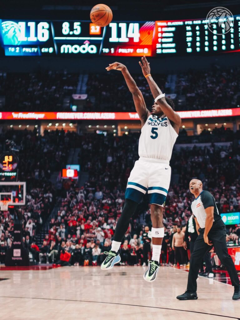 Anthony Edwards tuvo una destacada actuación de 41 puntos, guiando a los Minnesota Timberwolves a una emocionante victoria de remontada por 118-114 contra los Portland Trail Blazers en su primer partido de la temporada el miércoles por la noche. A pesar de las preocupaciones por espasmos en la espalda, Edwards, quien promedió un récord personal de 27.6 puntos la temporada pasada, comenzó el partido y fue fundamental en la remontada al final del último cuarto.