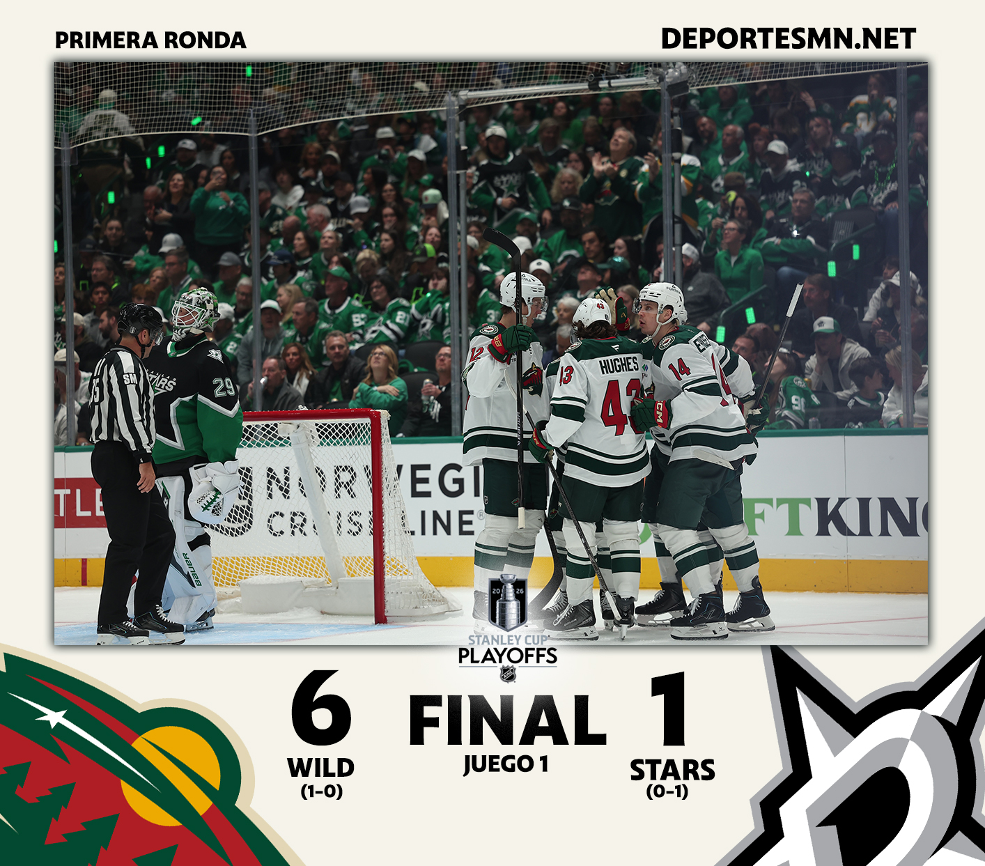 DALLAS, TX – En una exhibición de hockey total, el Minnesota Wild desmanteló a los Dallas Stars con un contundente 6-1 en el inicio de la primera ronda de los playoffs. Lo que se esperaba como un duelo cerrado de portería terminó siendo un monólogo del equipo de Dean Evason, que ahora lidera la serie 1-0 y le arrebata la ventaja de localía a los texanos.