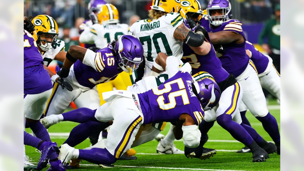 Con Jordan Love en la banca, los Packers le dieron a Clayton Tune su segunda apertura como profesional. La ofensiva tuvo problemas, logrando menos-7 yardas por pase. Tune completó 6 de 11 pases para 34 yardas, y Green Bay despejó en ocho de sus nueve posesiones, logrando solo un gol de campo corto de Brandon McManus en los segundos finales para evitar una blanqueada. Dallas Turner registró dos de las cuatro capturas de Minnesota, que representaron 41 yardas perdidas para Green Bay.
