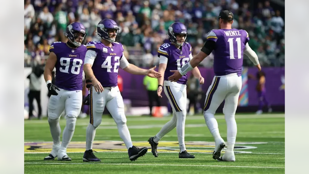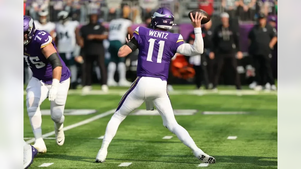Carson Wentz, el mariscal de campo de los Vikings, tuvo una tarde errática, yendo 26 de 42 para 313 yardas. Lanzó dos intercepciones en su propio territorio y luchó por convertir oportunidades en la zona roja, lo que obligó a los Vikings a conformarse con los goles de campo de Will Reichard en cinco de seis posesiones dentro de la yarda 20.