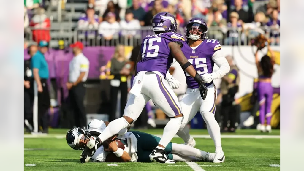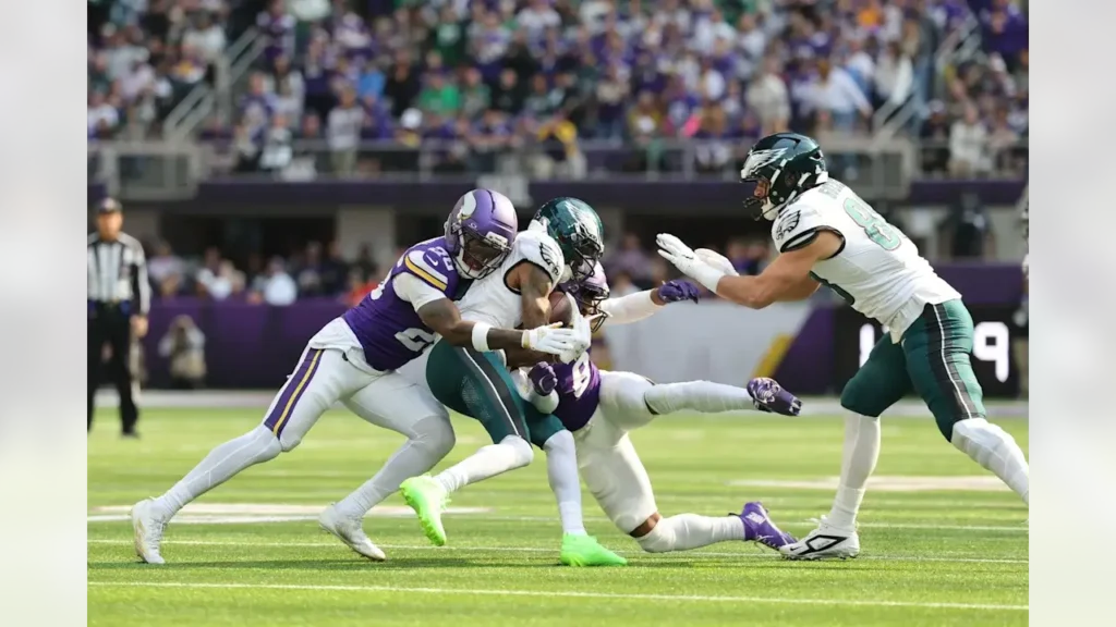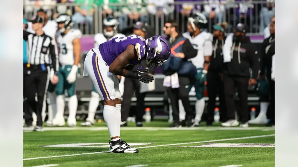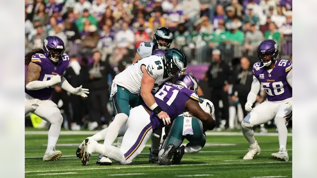 Los Eagles sufrieron varias lesiones, perdiendo al centro titular Cam Jurgens (rodilla) y a los linebackers Azeez Ojulari (isquiotibiales) y Jeremiah Trotter (tobillo) en el primer cuarto. El esquinero titular Adoree’ Jackson (conmoción cerebral) salió en el tercero. Los Vikings no contaron con el OLB titular Andrew Van Ginkel (cuello) por tercer partido consecutivo.