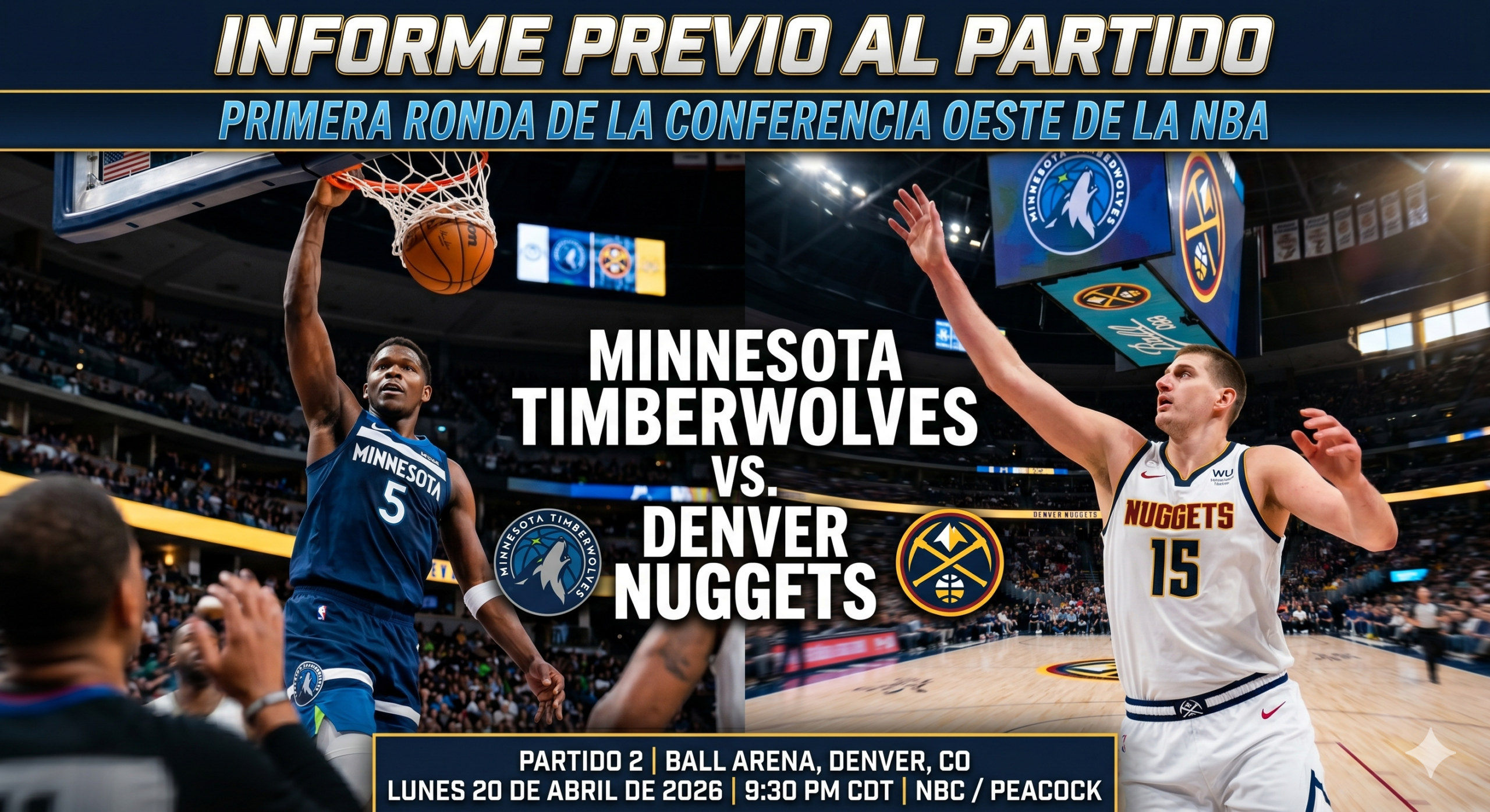 En Conclusión: Para que los Timberwolves igualen la serie, deben jugar una defensa disciplinada para mantener a Jokić y Murray lejos de la línea de tiros libres, mientras que Anthony Edwards necesita encontrar otra marcha ofensivamente. Los Nuggets, por su parte, buscarán mantener su dominio en casa y aprovechar su eficiencia ofensiva de élite para tomar una imponente ventaja de 2-0.