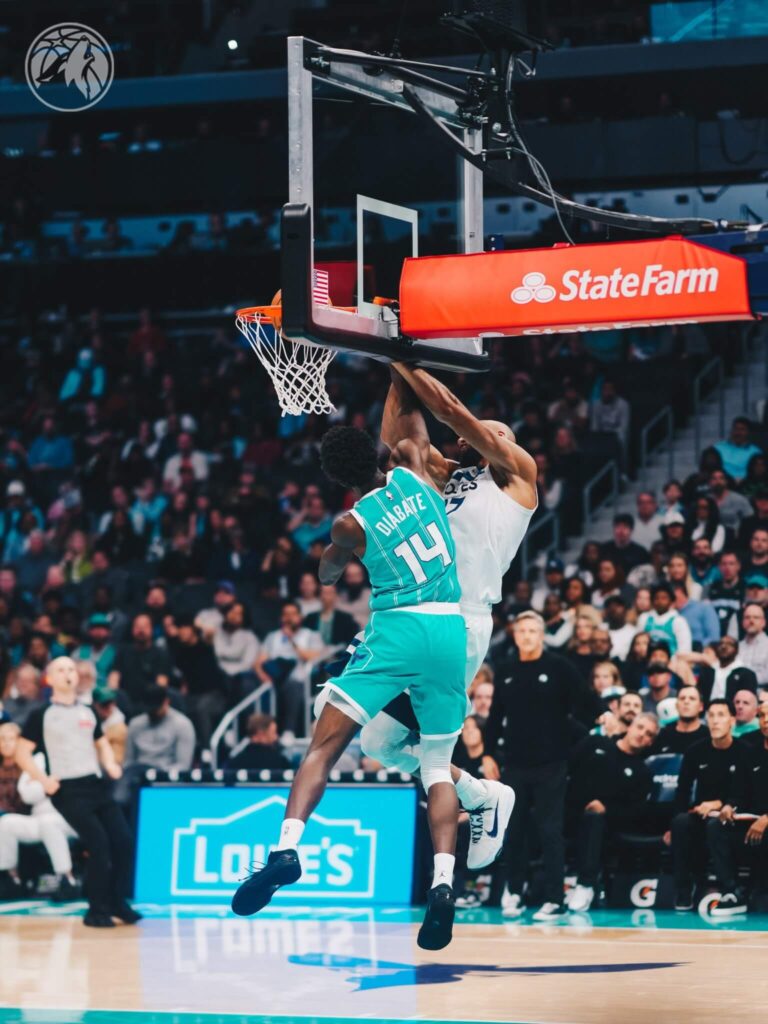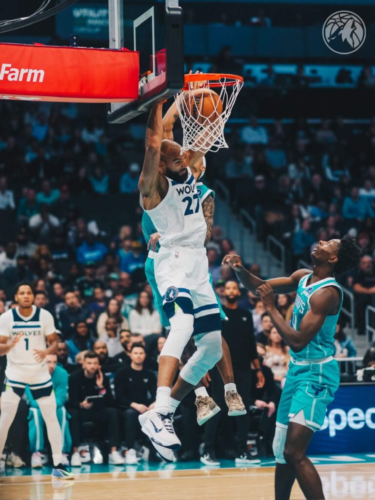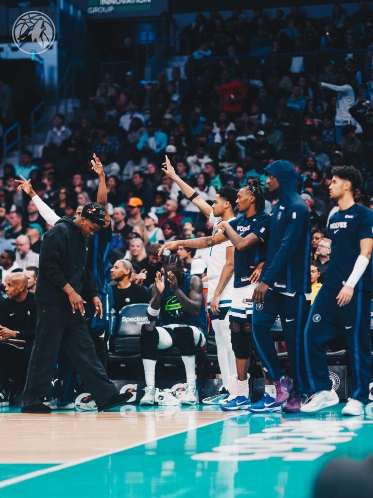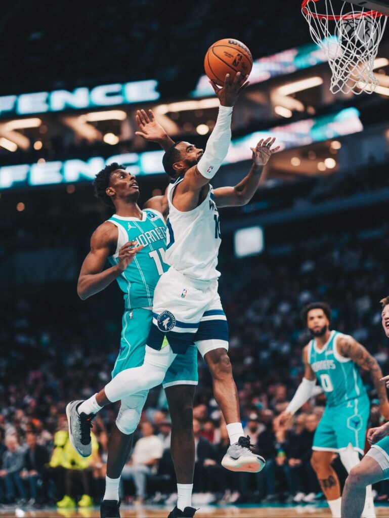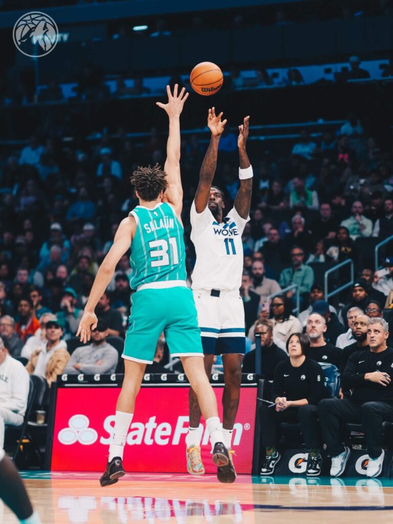 El escolta de los Timberwolves, Rob Dillingham, jugando en su segundo partido de carrera cerca de su ciudad natal de Hickory, Carolina del Norte, contribuyó con cuatro puntos y tres asistencias en 15 minutos.