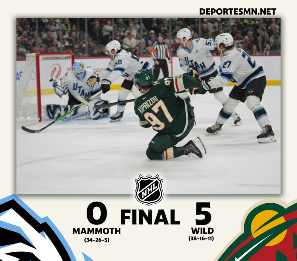 El Minnesota Wild derrotó al Utah Mammoth 5-0 el martes por la noche, con goles de Kirill Kaprizov y Matt Boldy liderando la ofensiva y Filip Gustavsson anclando la defensa con su cuarta blanqueada de la temporada.